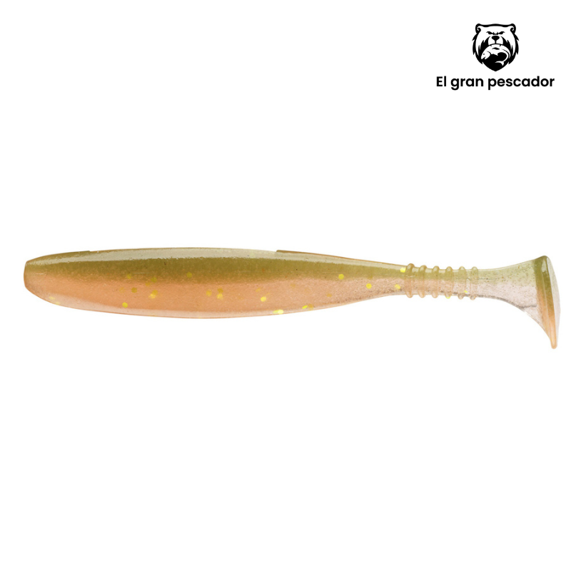 Fabricado en Japón, este shad puede ser montado con un anzuelo Texas para la pesca entre dos aguas o con una cabeza plomada para las pescas lineales sobre el fondo. La flexibilidad del material y la estructura de su cola le dan una acción de nado inmediata a la menor animación, incluso a poca velocidad de recuperación. Es el señuelo blando por excelencia para pescas difíciles.